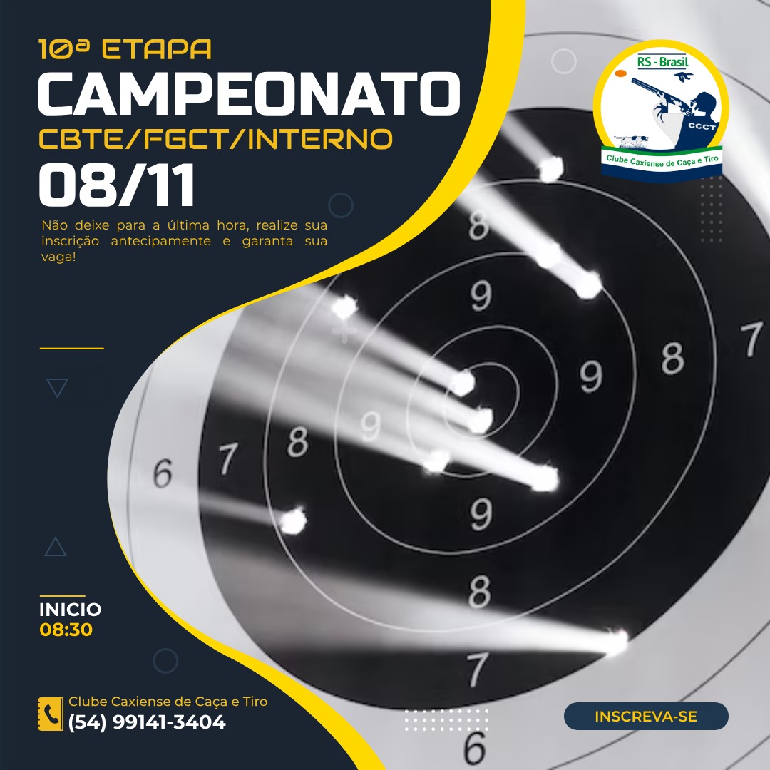 O Clube Caxiense de Caça e Tiro – CCCT, a Federação Gaúcha de Caça e Tiro – FGCT e a Confederação Brasileira de Tiro Esportivo – CBTE, tem a honra de convidar os atiradores, familiares e simpatizantes do esporte de tiro a bala para: