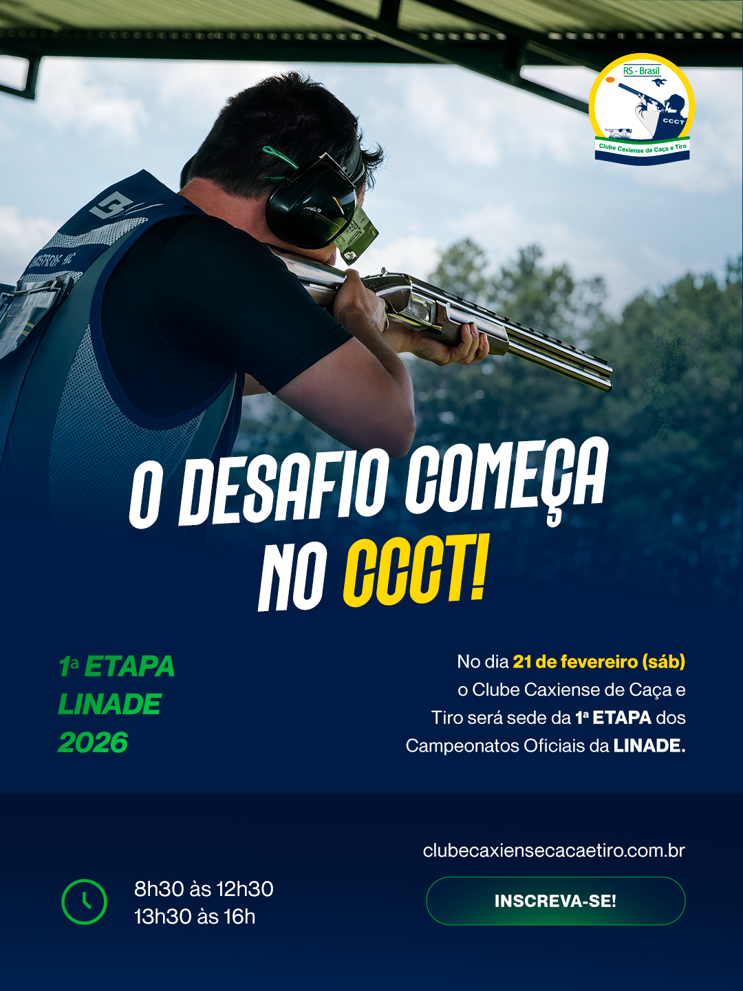 No sábado 21 de fevereiro, o Clube Caxiense de Caça e Tiro será sede da 1ª ETAPA dos Campeonatos Oficiais da LINADE — a largada para quem quer iniciar o ano já pontuando no ranking nacional.